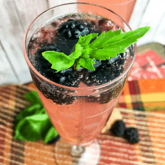 Enjoy a tasty fruit Prosecco cocktail complete with blackberry, basil and elderflower liqueur